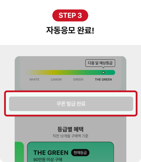 - 본 이벤트는 이벤트 기간 내 등급 확인 및 멤버십 쿠폰을 발급하면 자동으로 응모돼요.