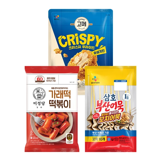 상품 상세 정보상품 코드 : 40213398상품이미지를 터치하면 자세히 확인하실 수 있어요.미정당 가래떡떡볶이 400g상품1) 미정당 가래떡떡볶이 400g상품2) 삼호 쫄깃해서 불지않는 꼬치어묵 324g상품3) 고메 크리스피후라이드순살치킨350g 본 컨텐츠(제품 이미지, 텍스트, 상세페이지 등)의 저작권은 CJ제일제당에 있으며, 무단으로 복사/배포 시 저작권법에 의거 민/형사상 책임을 물을 수 있습니다. © CJ Cheiljedang Corp.