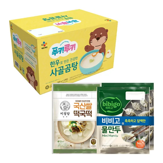 상품 상세 정보상품 코드 : 40222990상품이미지를 터치하면 자세히 확인하실 수 있어요.푸키루키 한우로 만든 건강한 사골곰탕 300x5개상품1) 푸키루키 한우로 만든 건강한 사골곰탕 300x5개상품2) 비비고 물만두 370g*2ea상품3) 미정당 국산쌀 떡국떡1kg 본 컨텐츠(제품 이미지, 텍스트, 상세페이지 등)의 저작권은 CJ제일제당에 있으며, 무단으로 복사/배포 시 저작권법에 의거 민/형사상 책임을 물을 수 있습니다. © CJ Cheiljedang Corp.
