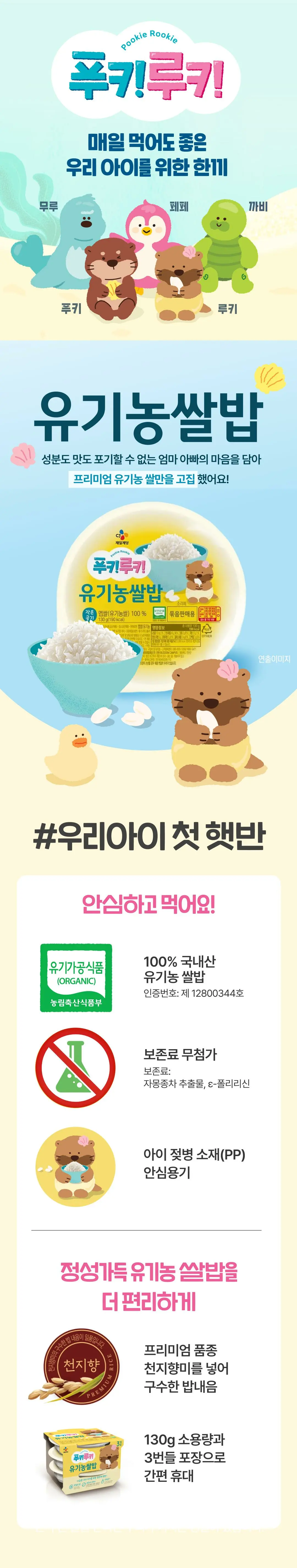 상품 상세 정보상품 코드 : 40220170상품이미지를 터치하면 자세히 확인하실 수 있어요.푸키루키 유기농쌀밥 130*3번들상품1) 푸키루키 유기농쌀밥 130*3번들상품2) 햇반 210gx8번들 본 컨텐츠(제품 이미지, 텍스트, 상세페이지 등)의 저작권은 CJ제일제당에 있으며, 무단으로 복사/배포 시 저작권법에 의거 민/형사상 책임을 물을 수 있습니다. © CJ Cheiljedang Corp.