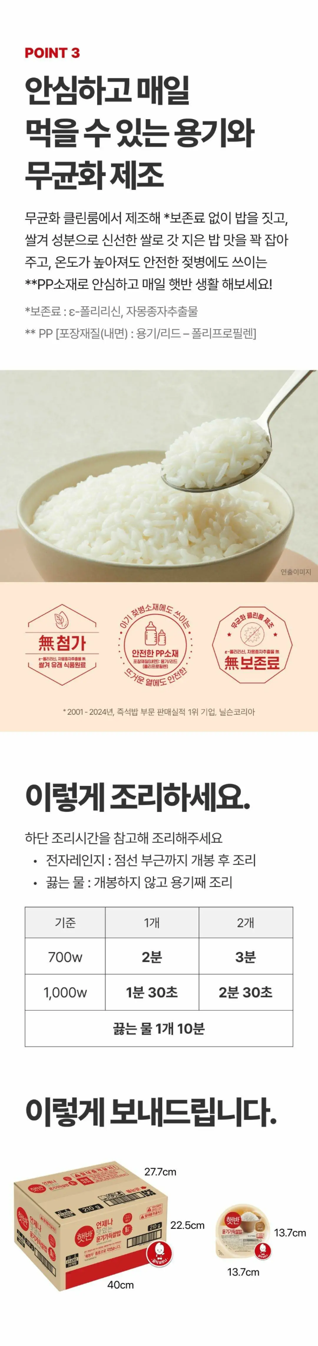 관련 기획전상품 정보 고시배송안내취소/교환/반품 안내상품 Q&A상품 관련 궁금하신 사항이 있으면 궁금하신 점을 문의해 주세요.고객님의 질문에 정성껏 빠르게 답변해 드리겠습니다. 작성해주신 문의내역 및 답변은 마이페이지활동정보1:1 문의내역 메뉴에서 확인 가능해요. 문의하기카테고리햇반/볶음밥/컵반/죽햇반/쌀